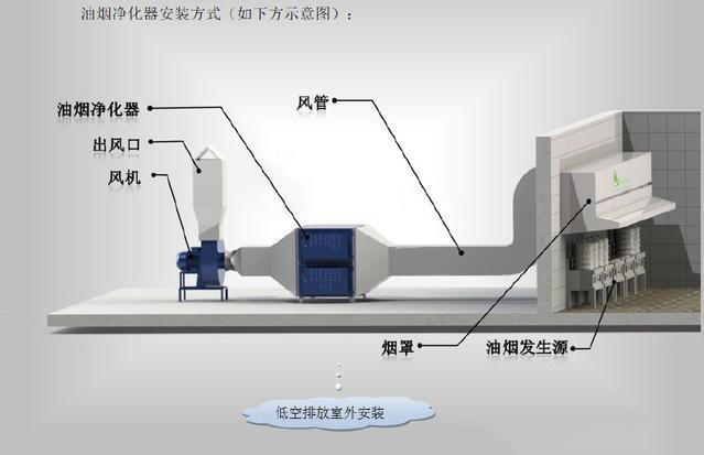 油烟净化器是指油烟废气的处理装置。油烟净化器主要用于厨房低空排放油烟的净化治理;用于宾馆、饭馆、酒家、餐厅以及学校、机关、工厂等场所;食品油炸、烹任加工行业;油溅热处理车间、油雾润滑车间、工件焊接车间以及烯油锅炉排放等工业场合。